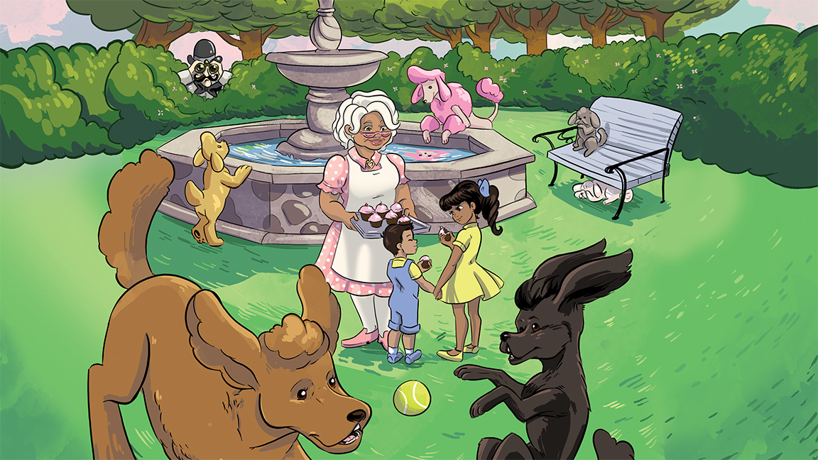 The perfect introduction to comics for kids. A sweet, fun, silly adventure without any violence. Six retired show poodles must stop a baddie from stealing their owner's brownie recipe.